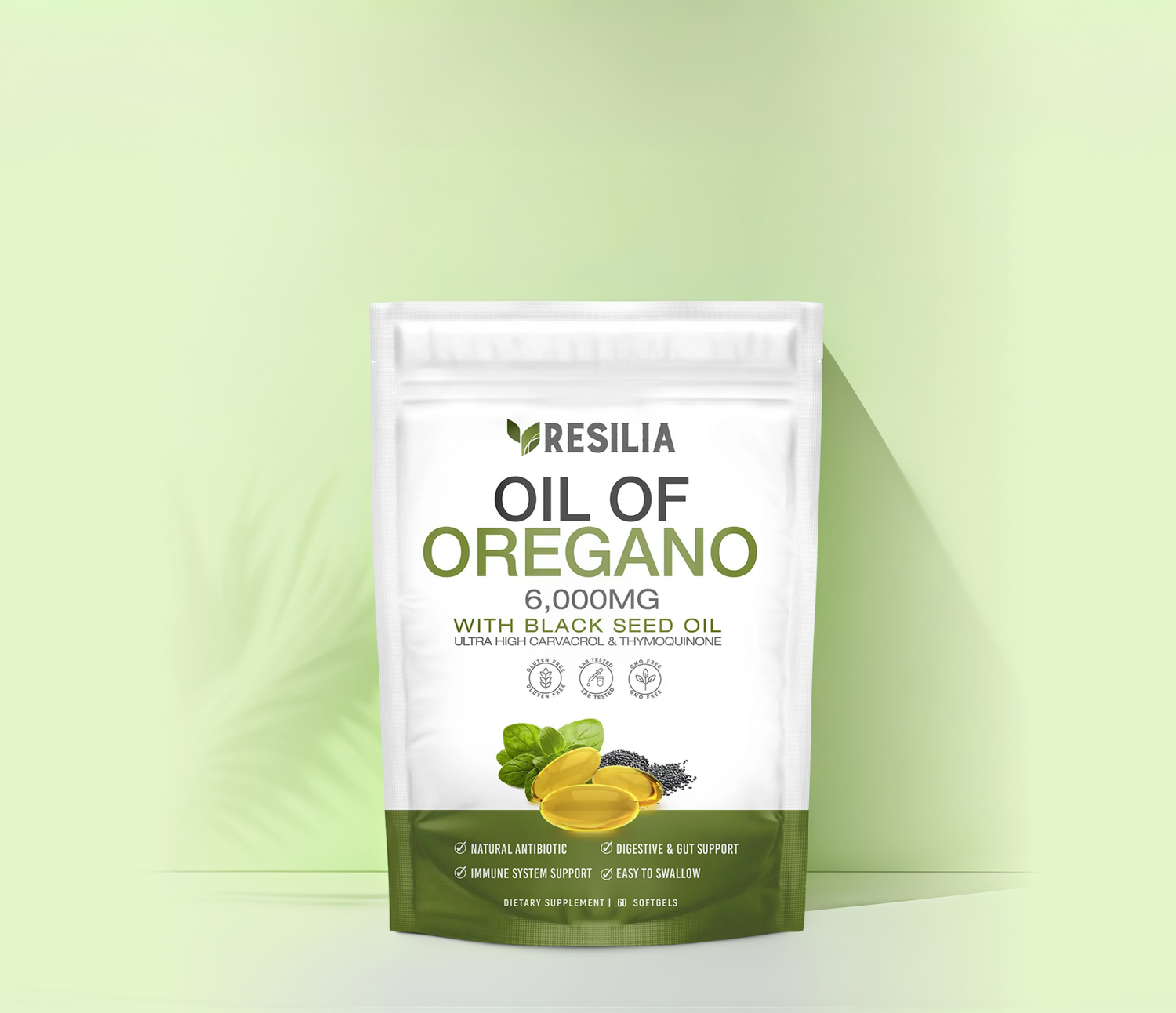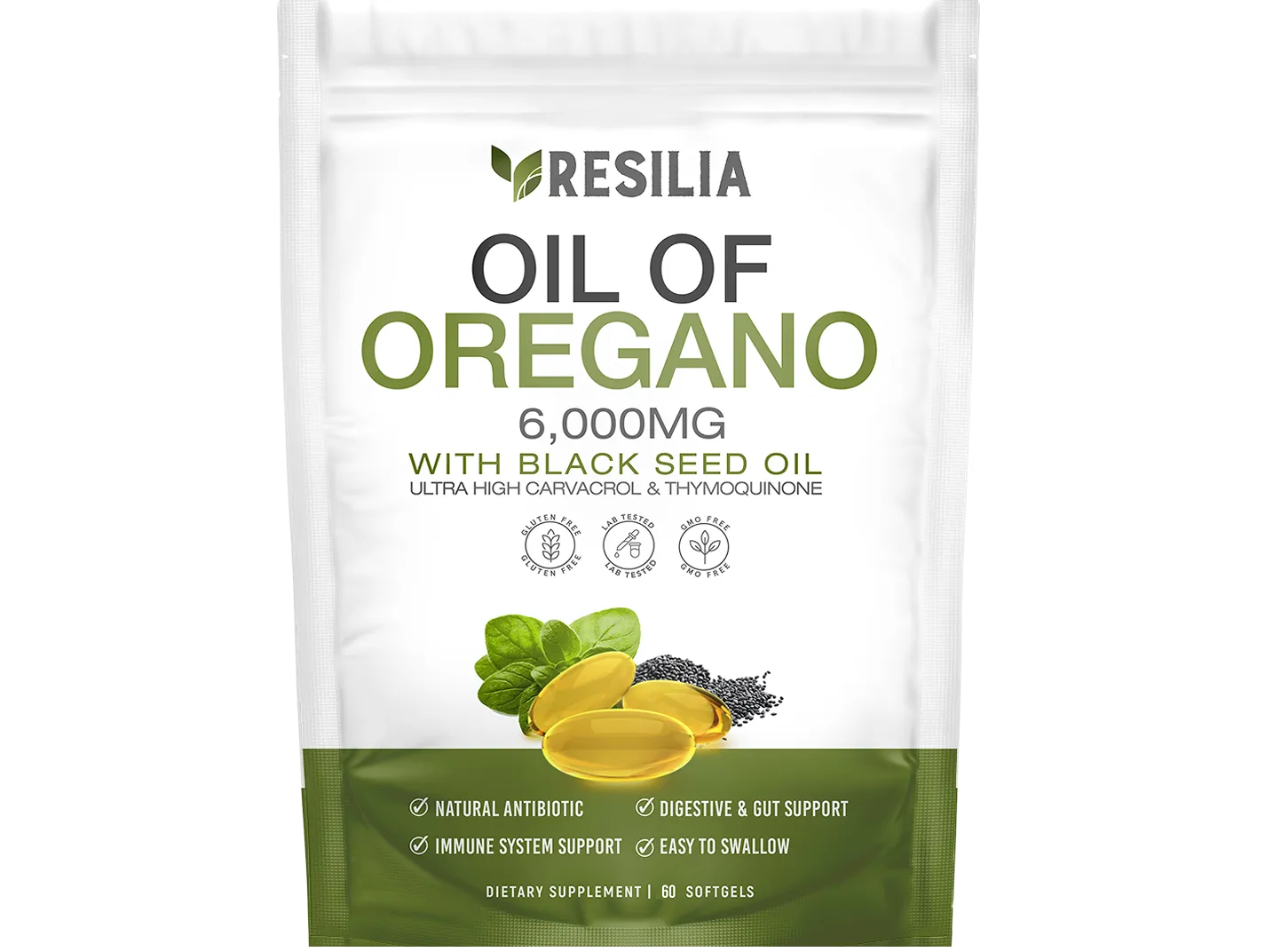 Resilia® Oil of Oregano Softgels combine powerful oregano oil and black seed oil to support immunity and healthy digestion. Easy-to-take softgels make daily wellness simple and effective.