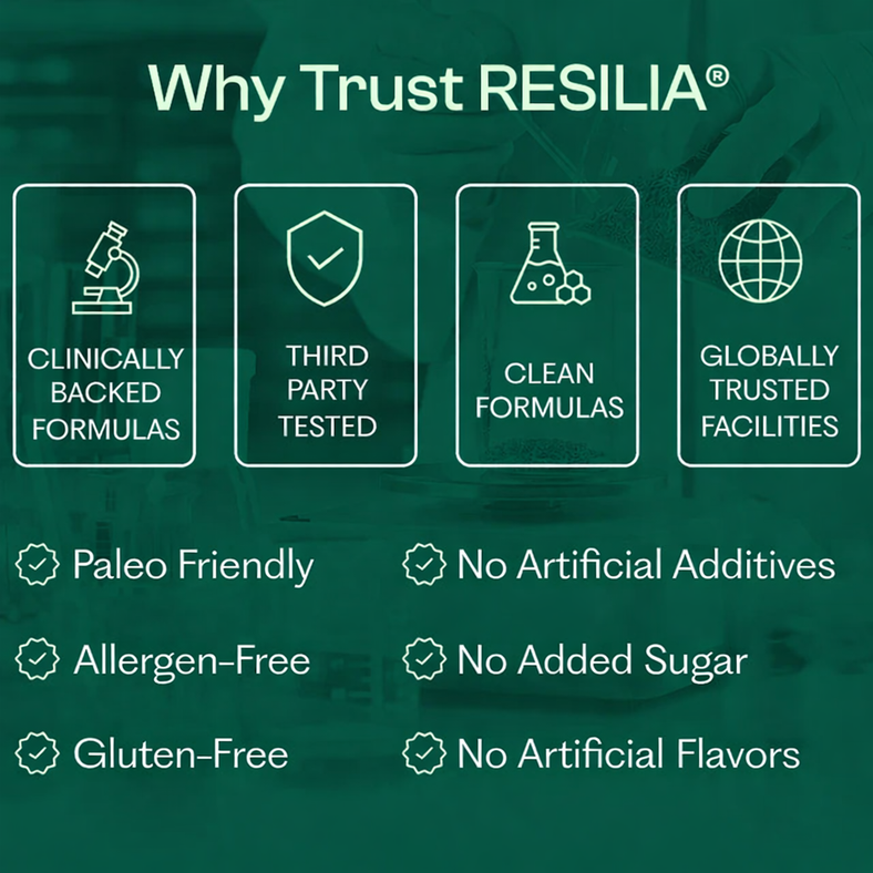 Your body deserves more than empty claims. Resilia® delivers real, measurable results using ingredients with decades of clinical research.